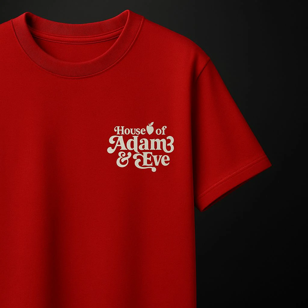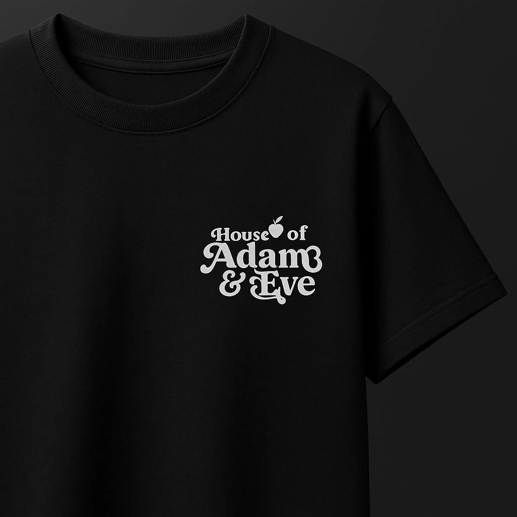 Artwork: Oversized back print – serpent, apple, and bloom.