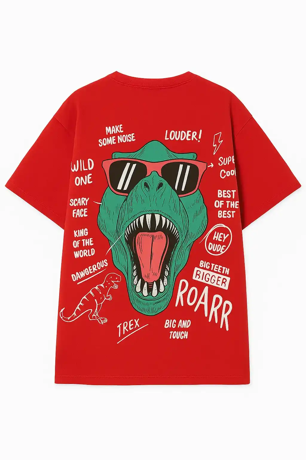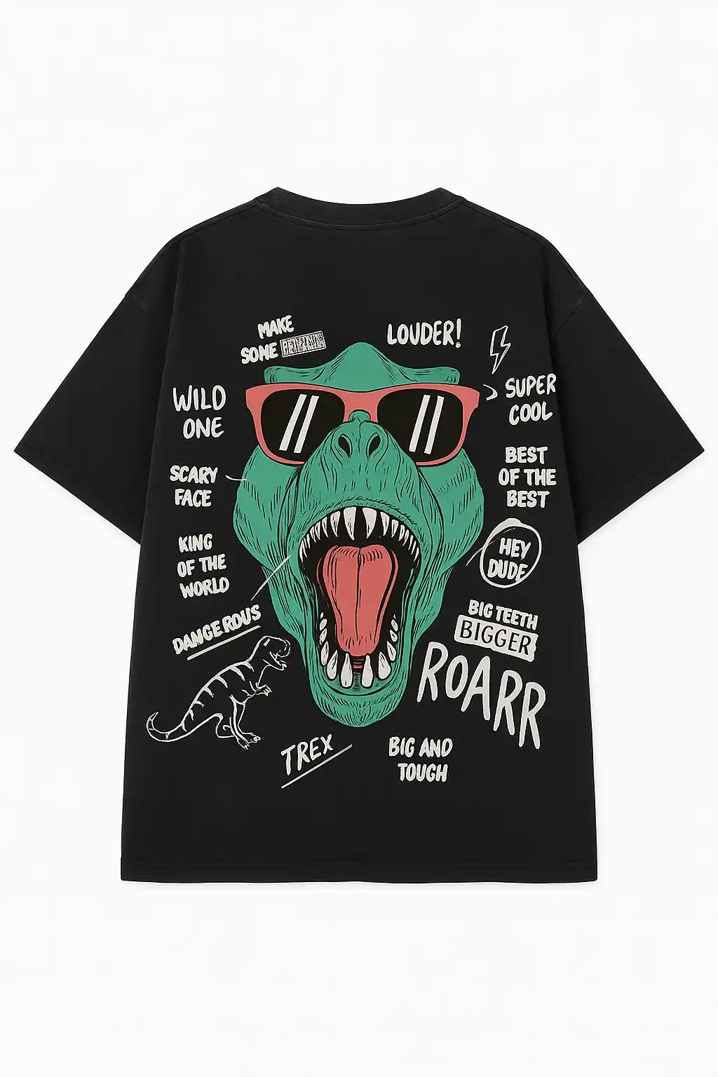 This isn’t just a tee — it’s a whole vibe. Featuring a loud, bold T-Rex rocking those shades like he owns the Jurassic streets, the Roar Mode Tee is for the ones who were born to stand out.
