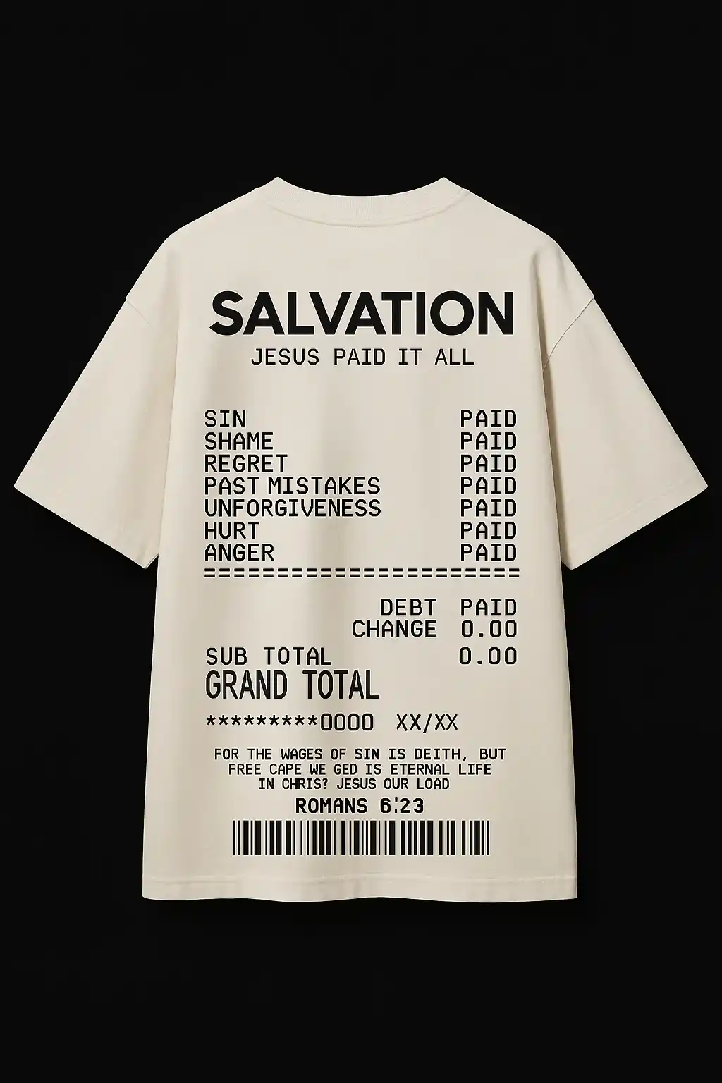 This “SALVATION” tee hits like a divine receipt — every sin, shame, and regret? PAID IN FULL. 🕊️